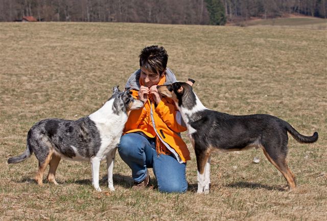 Floyd hat seine Augen für immer geschlossen. Er hatte mir versichert, dass alles vorbereitet war und alles seinen Lauf nehmen würde. Auch bleibe er solange bei mir, bis ich die schlimmste Trauer überstanden habe. Ich kam gut mit dem Abschied von Floyd zurecht – auch Kim konnte ihn gehen lassen. Wir waren ja nicht alleine. Floyd war da – auf einer anderen Ebene. Doch der Alltag zeigte uns in unzähligen Situationen, dass die Lücke die Floyd hinterließ, sich zu einem unüberwindlichen Abgrund auftat. Monate vergingen. Ich zog mich in mich zurück und klammerte mich an Floyd; auch Kim entfernte sich immer mehr aus unserer Welt. Sie zog sich zurück, hatte keine Aufgabe mehr. Es war an der Zeit, wieder junges Leben in unsere Gemeinschaft zu holen. Klar war: es wird wieder ein Kurzhaarcollie sein. Aber nicht irgendeiner. So lernten wir eine bezaubernde junge Hündin kennen. Kim hätte zwar lieber einen Rüden an ihrer Seite gehabt, aber diese Hündin wäre ihr auch eine gute Freundin gewesen, so Kim´s Aussage. Ich kriegte es aber nicht organisiert. So ein junger Hund braucht eine Beschäftigung. Da ich berufstätig bin, suchte ich nach einer Lösung. Es gab keine. Aussichtslos. Es schmerzte und wir zogen uns zurück. Ich bat Floyd um Rat. Er zeigte mir einen halbwüchsigen tricolour Rüden – ohne Kommentar. Ich wusste nicht, was ich davon halten soll. Ich hatte doch keine Lösung für den Alltag mit einem jungen Hund.