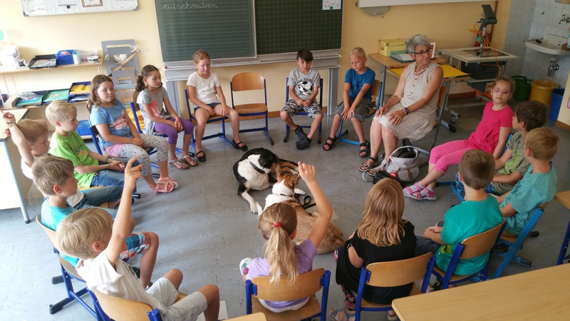 Die Klasse 2a bedankt sich ganz herzlich bei Frau Wiesler-Grauer und ihren vierbeinigen Freunden von der Hundeschule Wiesler für den lehrreichen und freundlichen Besuch!