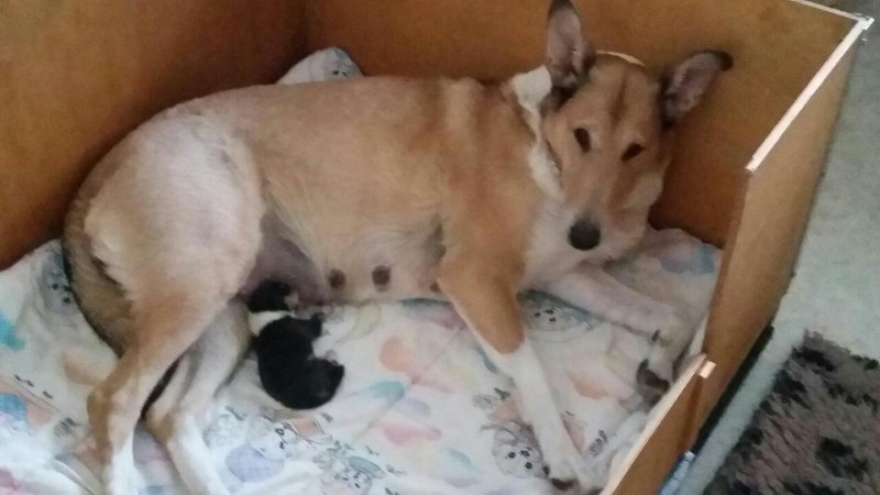 Silja geht es prima mit ihrem Sohn. Sie trohnt in ihrer Wurfkiste wie